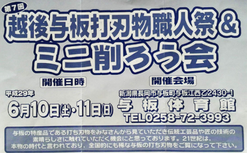 6月10日(土)降りしきる雨の中、新潟県長岡市与板の「越後与板打刃物職人祭&ミニ削ろう会」に