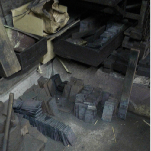 大量のコークスやハンマー等普段は見ることの出来ない水野さんの工房内。