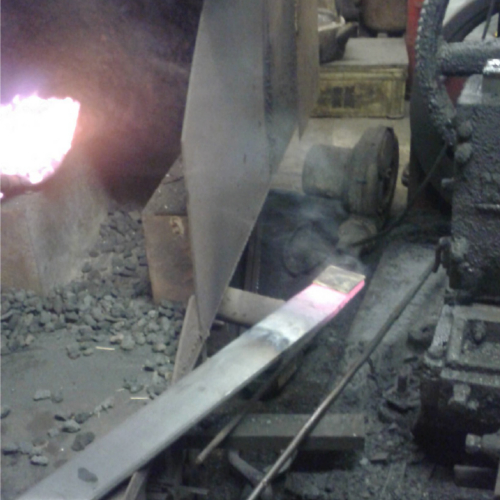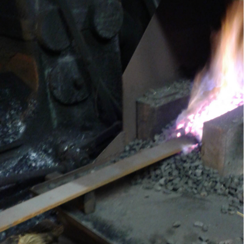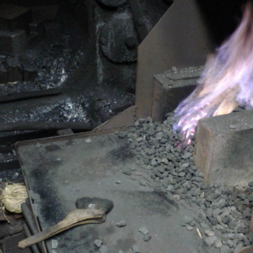 1200度まで上昇する炉にコークスが投入され、いよいよ鍛造開始です。
