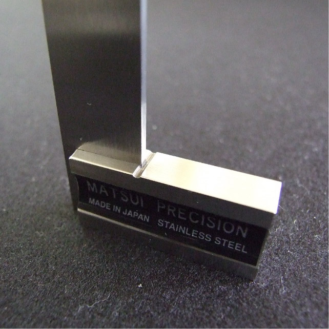- 従来の台付精密スコヤは、角度仕上げはヤスリがけでしたが、このスコヤは精密研削機械による研磨仕上げですので精度が高い精密スコヤです。