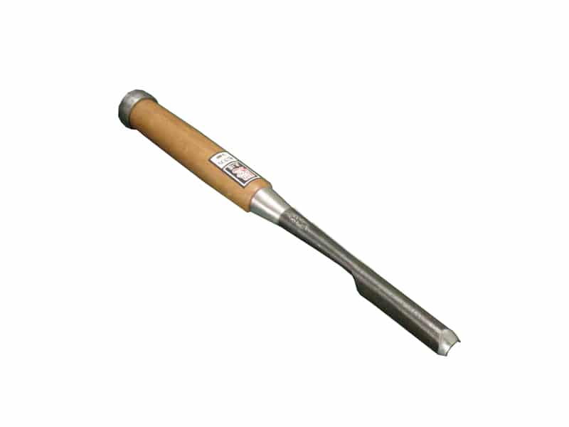 - 木彫りのみ(彫刻鑿)は、小道具刀と型はほとんど同じですが、小道具刀よりも刃が厚く柄に桂が付いています。玄翁や木槌などで桂からだした柄をたたくと、桂が下がり柄が割れることもなく最後まで使い切ることができます。柄は刃物よりも消耗が激しいので使い切ったら柄入れに出してください。