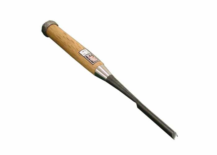 鑿の中では高品質!鋼は安来鋼白紙1号、柄は赤樫柄手打桂で鑢掻不要/全長230mm/柄長125mm/本刃付き