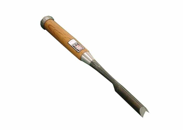 鑿の中では高品質!鋼は安来鋼白紙1号、柄は赤樫柄手打桂で鑢掻不要/全長230mm/柄長125mm/本刃付き