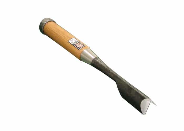 鑿の中では高品質!鋼は安来鋼白紙1号、柄は赤樫柄手打桂で鑢掻不要/全長230mm/柄長125mm/本刃付き
