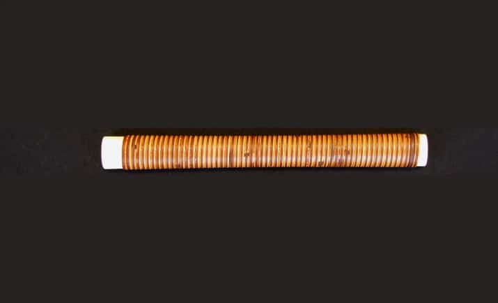 鉋や寸八 別注!「全籐巻き/栗色」は、籐の皮の表面を剥でありますので、手汗を吸収しやすく手が滑らず正確な作業が出来ます。 ただただ使いやすさのみならず、品質と技術の結晶による実用性に、道具としての風格をそなえた栗色が特徴です。 木部:国産材 沢胡桃 全籐巻き:栗色は、栗渋で着色あり色落しない本物。